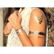 Temporary metallic tattoos are non-toxic and can be worn safely. Not suitable for children under 3 years of age or pregnant women. Do not apply close to the eyes, on sensitive skin or if you are allergic to adhesives.